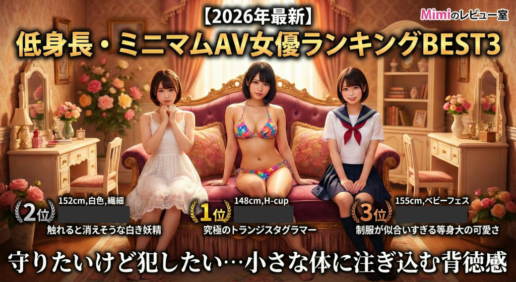 今回「Mimiのレビュー室」が自信を持ってお届けする記事は「【2026年最新】155cm以下「低身長・ミニマム」AV女優ランキングBEST3|守りたいけど犯したい…小さな体に注ぎ込む背徳感」です。ではどうぞ!